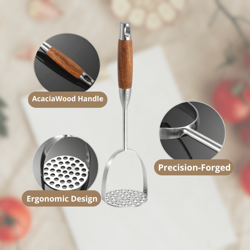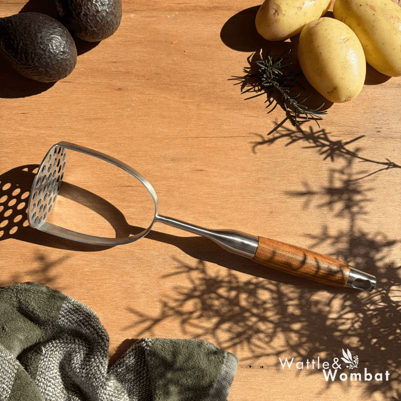 🌿 Upgrade your kitchen with The EcoMash™, our premium handcrafted potato masher made for everyday cooking. Stylish, durable, and completely safe for all cookware. Crafted from sustainable acacia wood with a 304-grade stainless steel head designed for smooth, effortless mashing, it’s the eco-friendly upgrade your kitchen deserves.