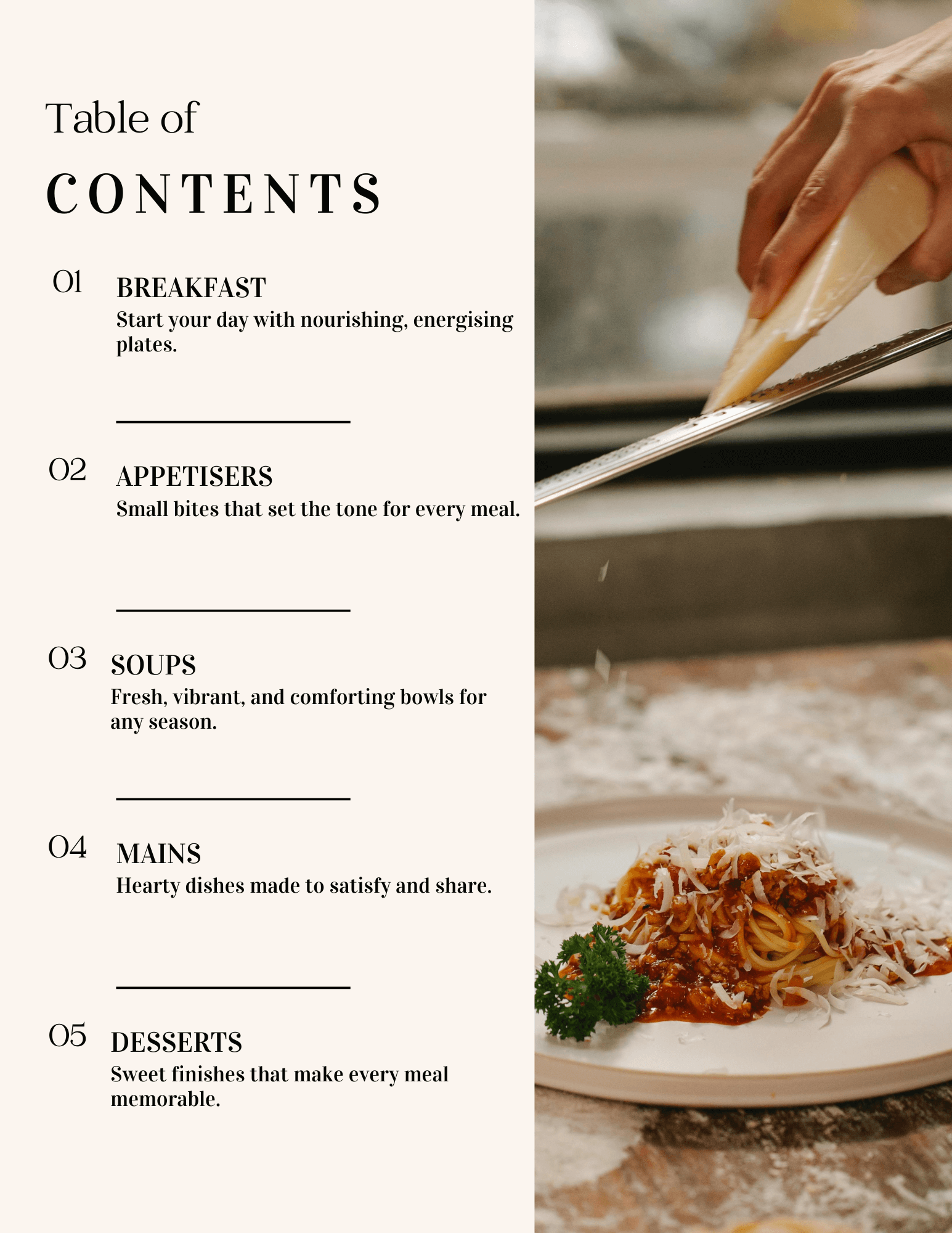 Whether you’re whipping up classic French toast, smoked salmon privilora, or roasted butternut squash soup, each recipe comes with prep times, cooking times, serving sizes, and helpful notes to make your cooking experience effortless and enjoyable.